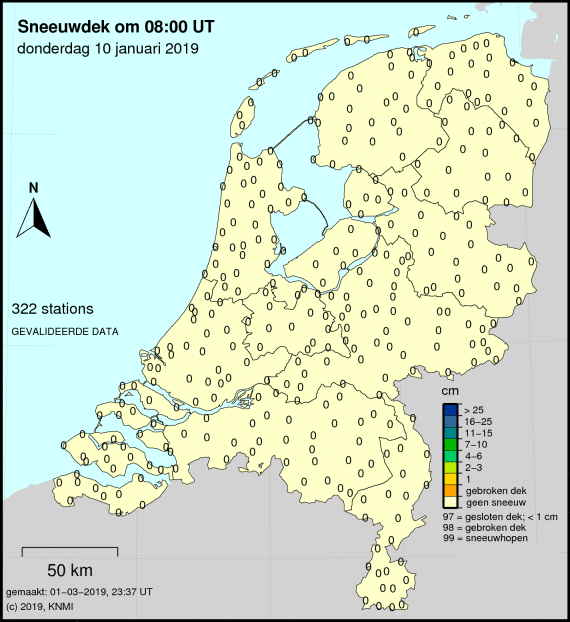 Is er tijdens het Weer 10 januari 2019sneeuw gevallen? Dan zie je dit op de laatste kaart.