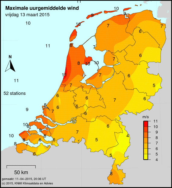 Bij windkaarten staat het maximale uurgemiddelde afgebeeld welke deze dag is gemeten. De windkracht wordt op 49 verschillende stations gemeten. Ook wordt de maximale windstoot weergegeven welke is gemeten.
