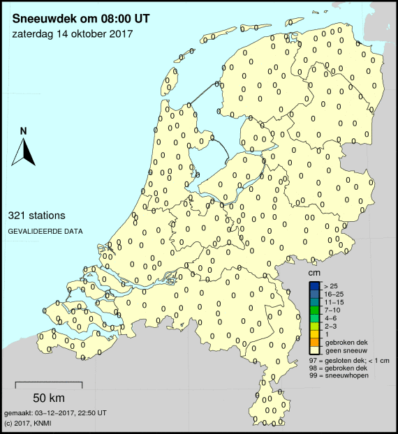 Is er tijdens het Weer 14 oktober 2017sneeuw gevallen? Dan zie je dit op de laatste kaart.