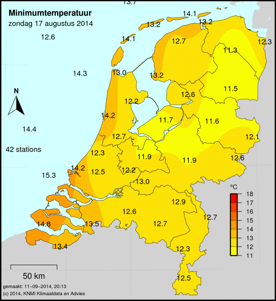 Bekijk het Weer 17 augustus 2014. Hoeveel neerslag was het die dag? Wat was de maximum, minimum en gemiddelde temperatuur die dag? Hoe lang scheen de zon en wat was de windkracht? Als er die dag een sneeuwdek lag, dan zie je dit op de laatste afbeelding.