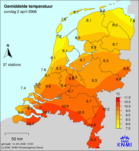 Bekijk het Weer 2 april 2006. Hoeveel neerslag was het die dag? Wat was de maximum, minimum en gemiddelde temperatuur die dag? Hoe lang scheen de zon en wat was de windkracht? Als er die dag een sneeuwdek lag, dan zie je dit op de laatste afbeelding.