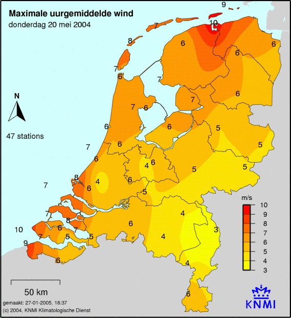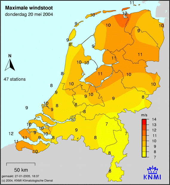 Bij windkaarten staat het maximale uurgemiddelde afgebeeld welke deze dag is gemeten. De windkracht wordt op 49 verschillende stations gemeten. Ook wordt de maximale windstoot weergegeven welke is gemeten.
