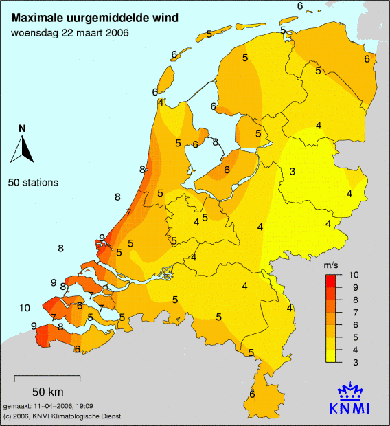 Bij windkaarten staat het maximale uurgemiddelde afgebeeld welke deze dag is gemeten. De windkracht wordt op 49 verschillende stations gemeten. Ook wordt de maximale windstoot weergegeven welke is gemeten.