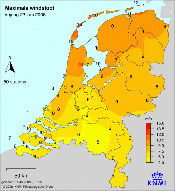 Bij windkaarten staat het maximale uurgemiddelde afgebeeld welke deze dag is gemeten. De windkracht wordt op 49 verschillende stations gemeten. Ook wordt de maximale windstoot weergegeven welke is gemeten.