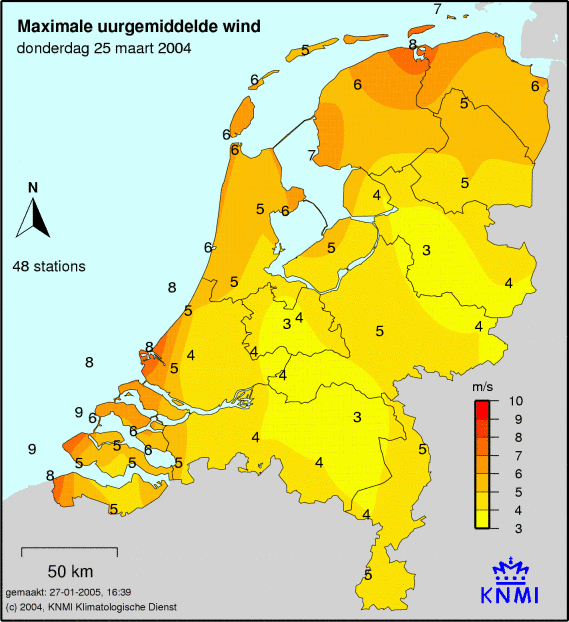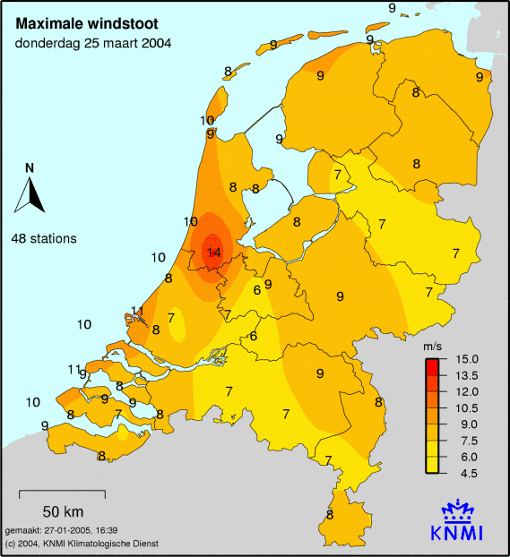 Bij windkaarten staat het maximale uurgemiddelde afgebeeld welke deze dag is gemeten. De windkracht wordt op 49 verschillende stations gemeten. Ook wordt de maximale windstoot weergegeven welke is gemeten.