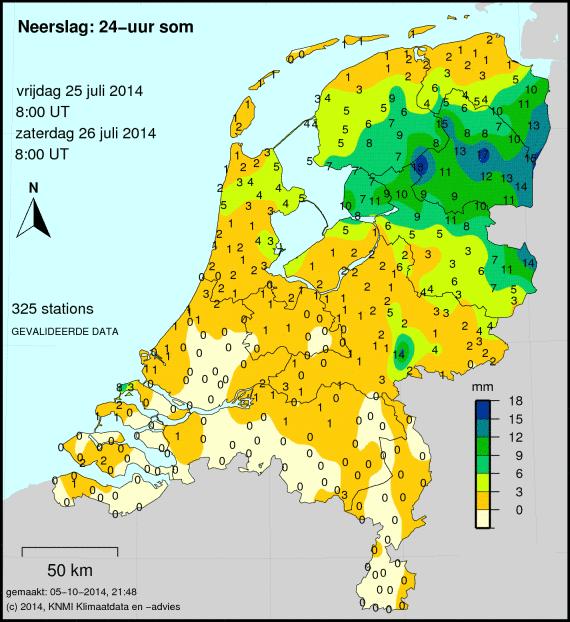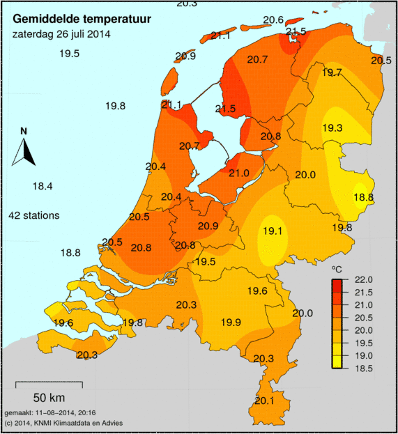 Bekijk het Weer 26 juli 2014. Hoeveel neerslag was het die dag? Wat was de maximum, minimum en gemiddelde temperatuur die dag? Hoe lang scheen de zon en wat was de windkracht? Als er die dag een sneeuwdek lag, dan zie je dit op de laatste afbeelding.