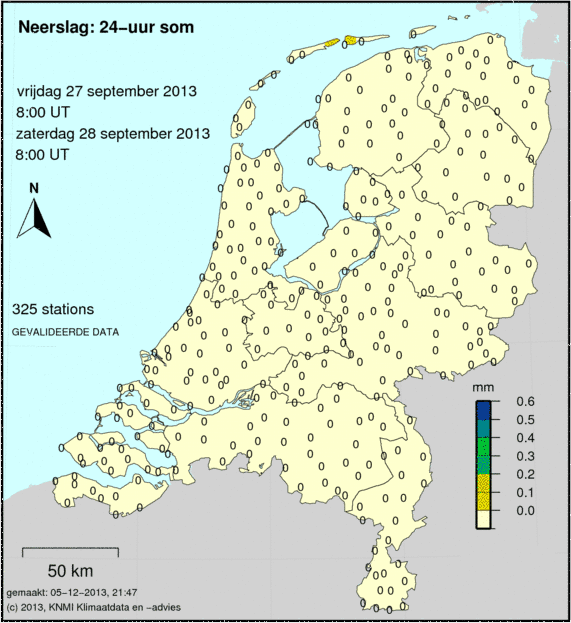 Weer 28 september 2013 met neerslag, temperatuur, wind en zonuren
