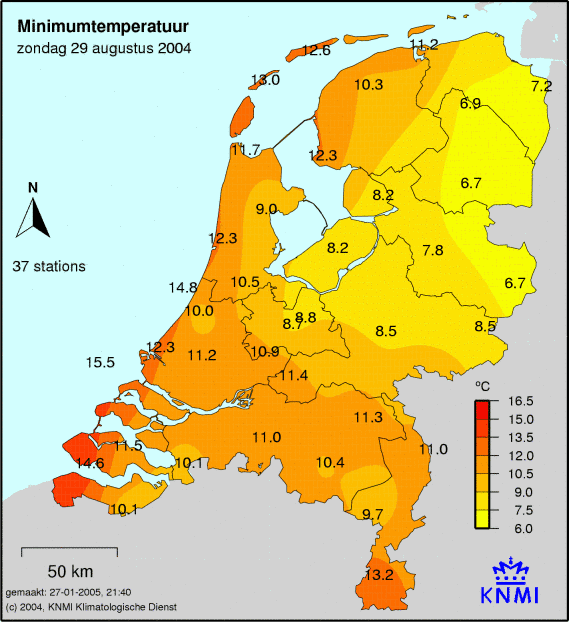 Bekijk het Weer 29 augustus 2004. Hoeveel neerslag was het die dag? Wat was de maximum, minimum en gemiddelde temperatuur die dag? Hoe lang scheen de zon en wat was de windkracht? Als er die dag een sneeuwdek lag, dan zie je dit op de laatste afbeelding.