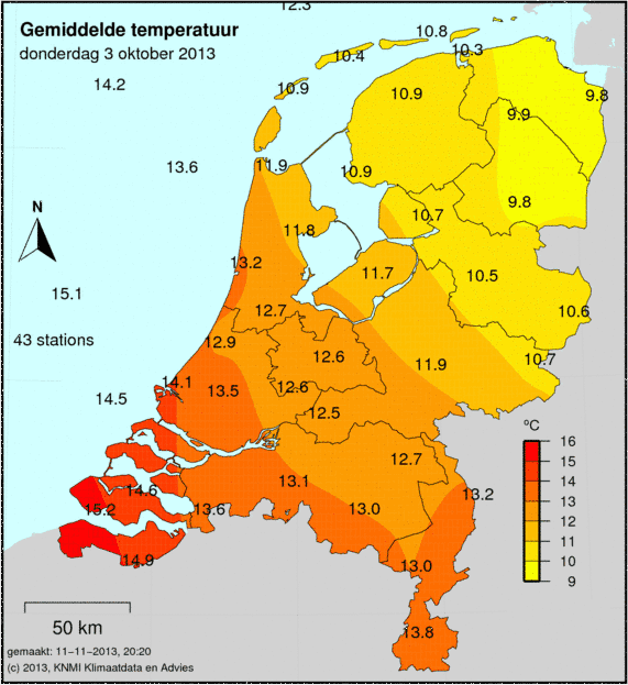 Bekijk het Weer 3 oktober 2013. Hoeveel neerslag was het die dag? Wat was de maximum, minimum en gemiddelde temperatuur die dag? Hoe lang scheen de zon en wat was de windkracht? Als er die dag een sneeuwdek lag, dan zie je dit op de laatste afbeelding.