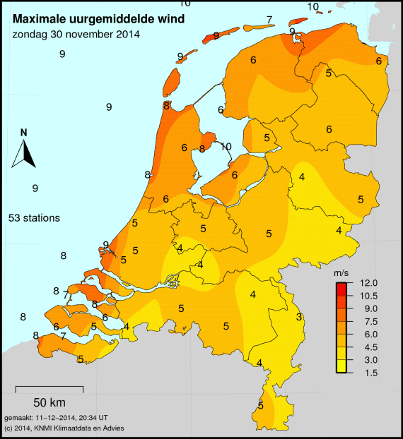 Bij windkaarten staat het maximale uurgemiddelde afgebeeld welke deze dag is gemeten. De windkracht wordt op 49 verschillende stations gemeten. Ook wordt de maximale windstoot weergegeven welke is gemeten.