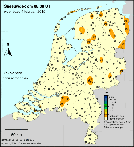 Is er tijdens het Weer 4 februari 2015sneeuw gevallen? Dan zie je dit op de laatste kaart.