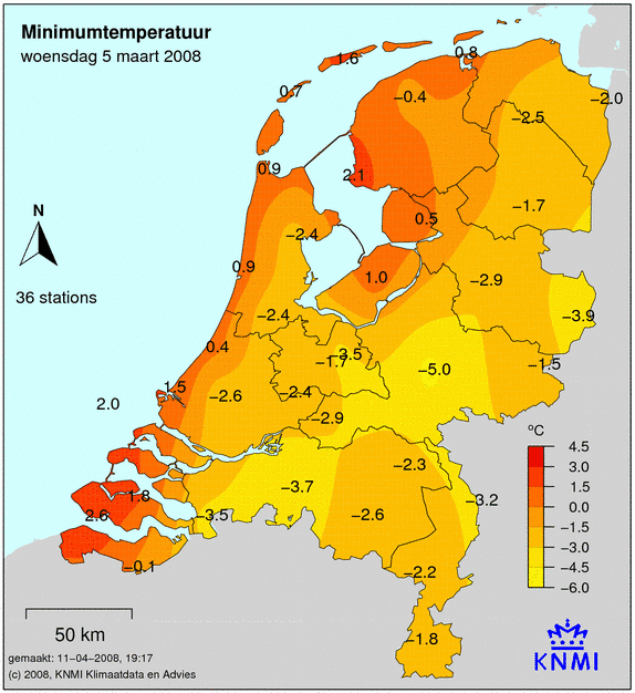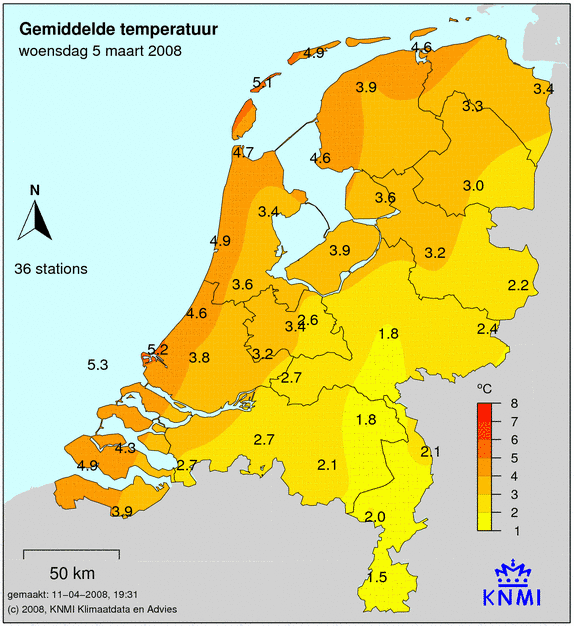 Bekijk het Weer 5 maart 2008. Hoeveel neerslag was het die dag? Wat was de maximum, minimum en gemiddelde temperatuur die dag? Hoe lang scheen de zon en wat was de windkracht? Als er die dag een sneeuwdek lag, dan zie je dit op de laatste afbeelding.