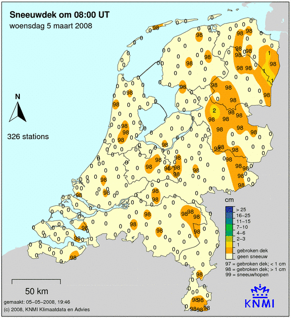 Is er tijdens het Weer 5 maart 2008sneeuw gevallen? Dan zie je dit op de laatste kaart.