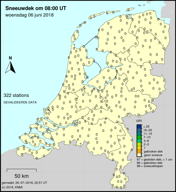 Is er tijdens het Weer 6 juni 2018sneeuw gevallen? Dan zie je dit op de laatste kaart.