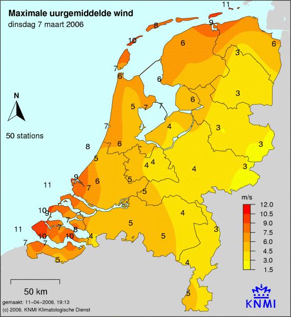 Bij windkaarten staat het maximale uurgemiddelde afgebeeld welke deze dag is gemeten. De windkracht wordt op 49 verschillende stations gemeten. Ook wordt de maximale windstoot weergegeven welke is gemeten.