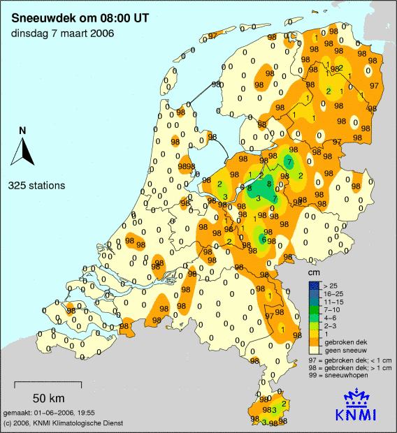Is er tijdens het Weer 7 maart 2006sneeuw gevallen? Dan zie je dit op de laatste kaart.