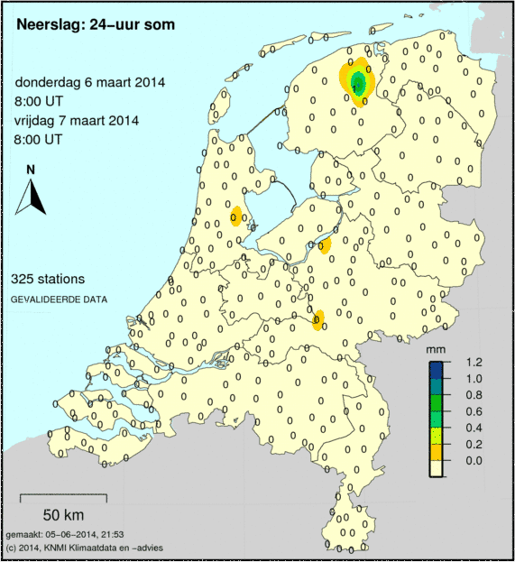 Is er tijdens het Weer 7 maart 2014sneeuw gevallen? Dan zie je dit op de laatste kaart.
