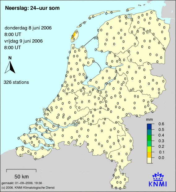 Is er tijdens het Weer 9 juni 2006sneeuw gevallen? Dan zie je dit op de laatste kaart.